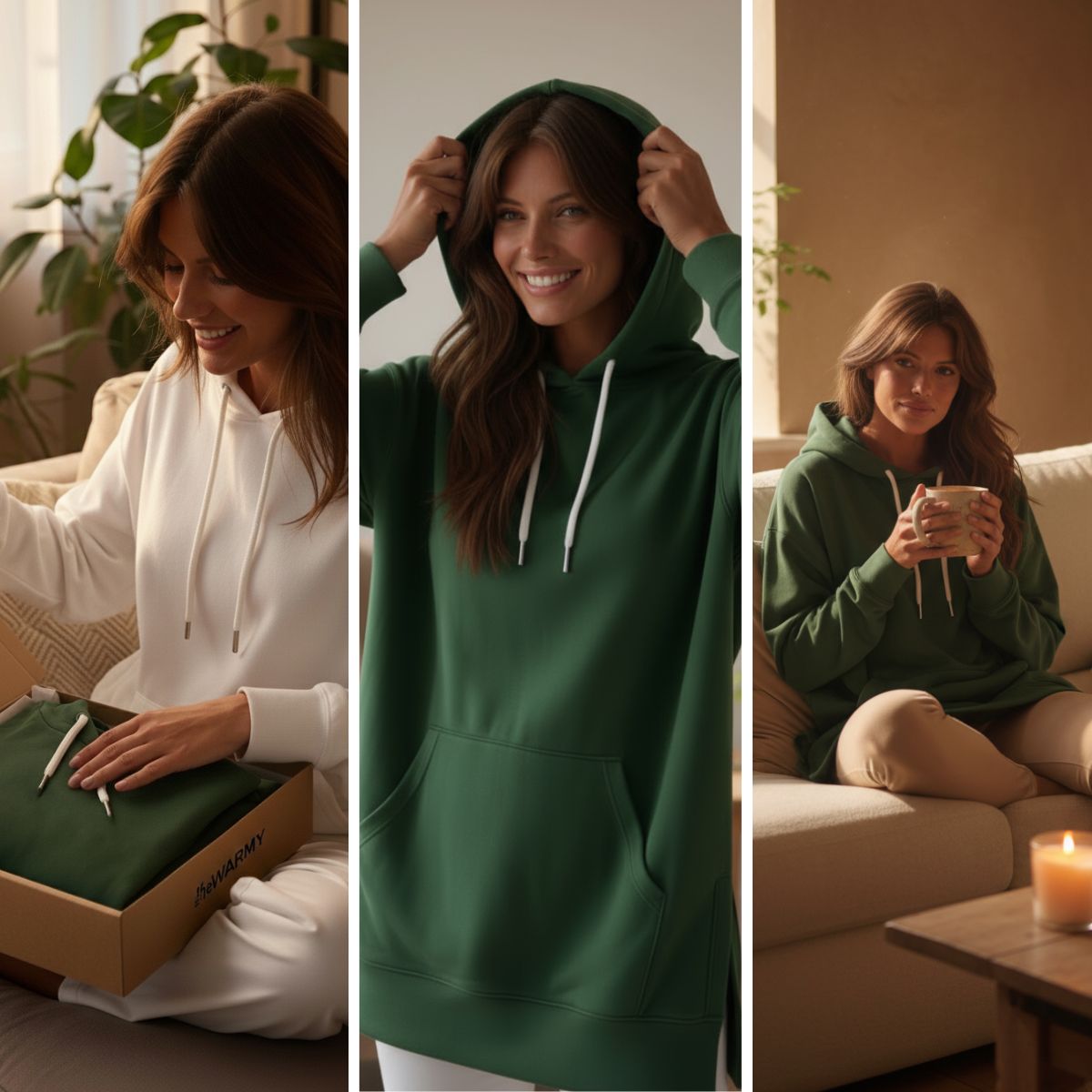 Fits true to size, take your usual hoodie size. Designed with a relaxed, oversized silhouette that flatters without feeling bulky. Made from our signature WarmyWeave™ Cotton: a 100% cotton outer and an ultra-soft, blanket-like interior for all-day comfort and warmth.
